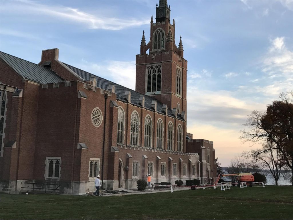 Culver Academies is a college preparatory boarding school located in Culver, Indiana. The Culver Memorial Chapel, sitting in the center of campus, is constructed of brick and decorative limestone elements. The interior is all limestone with intricate features, stained glass, and historically significant elements. Unfortunately the effects of time, weather, antiquated heating systems, etc. had taken its toll on the exterior and interior of the chapel.